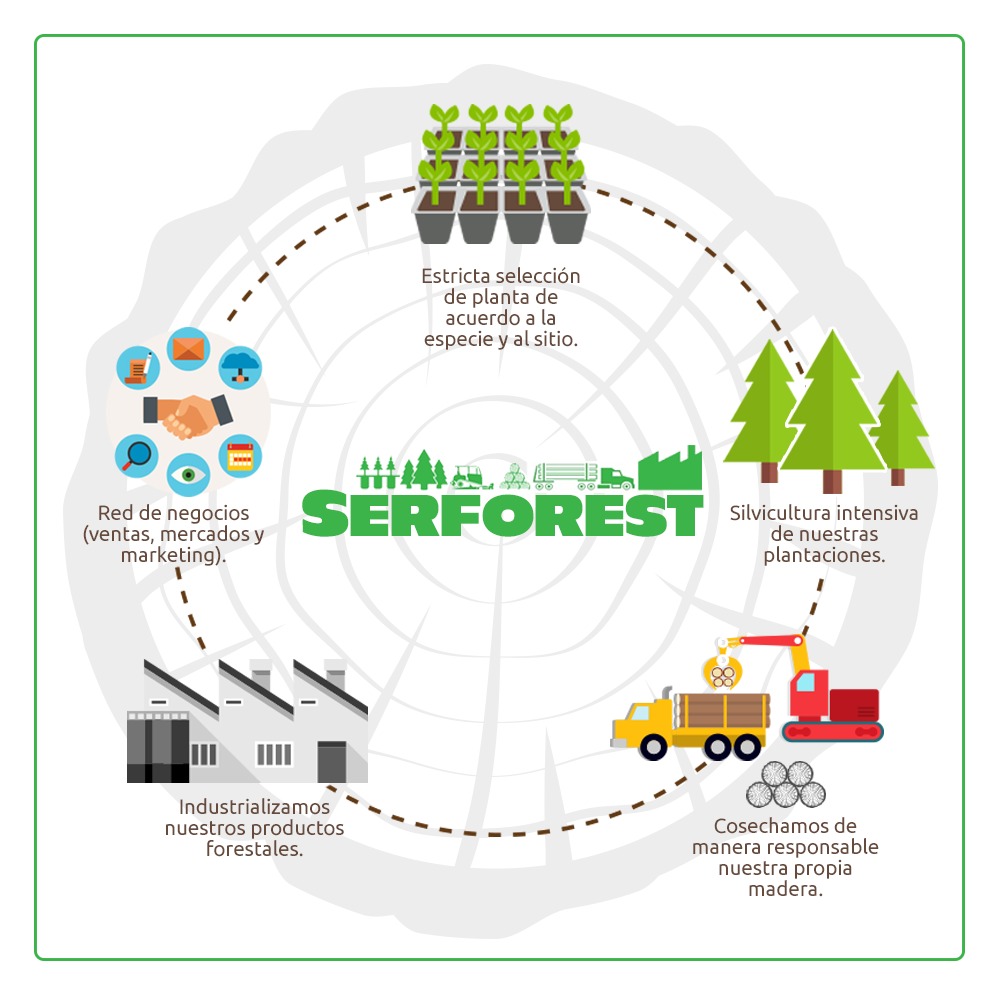 Somos una empresa con un enfoque profesional en la rama de la producción forestal; tanto en mantenimiento de las reforestaciones como la cosecha e industrialización de la madera. Por medio de procesos industriales convertimos los productos provenientes raleos de plantaciones forestales en productos como madera aserrada impregnada (curada), madera para alta carpintería o ebanistería, Postes impregnados (curados) de larga duración en condiciones adversas de clima y humedad, carbón natural y tutores agrícolas (estacas).